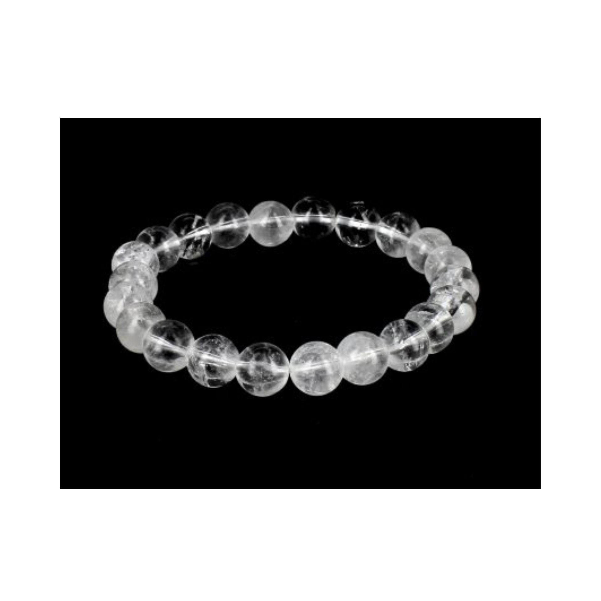Pulsera de Cuarzo Cristal en esferas de 8 mm con hilo elástico de silicona.